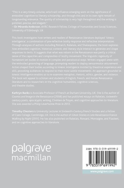 This book investigates how writers and readers of Renaissance literature deployed 'kinesic intelligence', a combination of pre-reflective bodily response and reflective interpretation. Through analyses of authors including Petrarch, Rabelais, and Shakespeare, the book explores how embodied cognition, historical context, and literary style interact to generate and shape responses to texts. It suggests that what was reborn in the Renaissance was partly a critical sense of the capacities and complexities of bodily movement. The linguistic ingenuity of humanism set bodies in motion in complex and paradoxical ways. Writers engaged anew with the embodied grounding of language, prompting readers to deploy sensorimotor attunement. Actors shaped their bodies according to kinesic intelligence molded by theatrical experience and skill, provoking audiences to respond to their most subtle movements. An approach grounded in kinesic intelligence enables us to re-examine metaphor, rhetoric, ethics, gender, and violence. The book will appeal to scholars and students of English, French, and Italian Renaissance literature and to researchers in the cognitive humanities, cognitive sciences, and theatre studies.