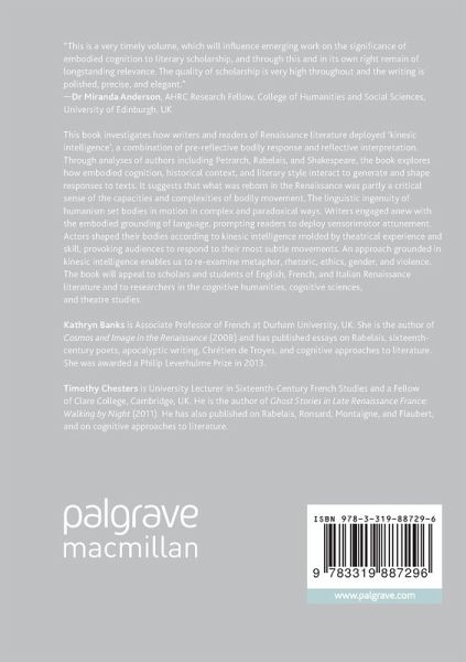 This book investigates how writers and readers of Renaissance literature deployed 'kinesic intelligence', a combination of pre-reflective bodily response and reflective interpretation. Through analyses of authors including Petrarch, Rabelais, and Shakespeare, the book explores how embodied cognition, historical context, and literary style interact to generate and shape responses to texts. It suggests that what was reborn in the Renaissance was partly a critical sense of the capacities and complexities of bodily movement. The linguistic ingenuity of humanism set bodies in motion in complex and paradoxical ways. Writers engaged anew with the embodied grounding of language, prompting readers to deploy sensorimotor attunement. Actors shaped their bodies according to kinesic intelligence molded by theatrical experience and skill, provoking audiences to respond to their most subtle movements. An approach grounded in kinesic intelligence enables us to re-examine metaphor, rhetoric, ethics, gender, and violence. The book will appeal to scholars and students of English, French, and Italian Renaissance literature and to researchers in the cognitive humanities, cognitive sciences, and theatre studies.