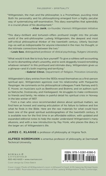 Wittgenstein’s diary from the 1930s contains the raw material for what could have been an incomparable spiritual autobiography. For the first time in an affordable edition, the volume includes updated and expanded editorial notes on Wittgenstein’s many allusions, and an introduction by Ray Monk on the larger arc of Wittgenstein’s life and work.