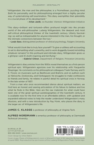 Wittgenstein’s diary from the 1930s contains the raw material for what could have been an incomparable spiritual autobiography. For the first time in an affordable edition, the volume includes updated and expanded editorial notes on Wittgenstein’s many allusions, and an introduction by Ray Monk on the larger arc of Wittgenstein’s life and work.