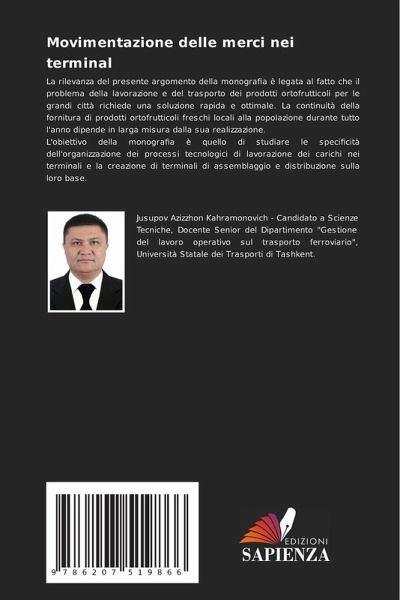La rilevanza del presente argomento della monografia è legata al fatto che il problema della lavorazione e del trasporto dei prodotti ortofrutticoli per le grandi città richiede una soluzione rapida e ottimale. La continuità della fornitura di prodotti ortofrutticoli freschi locali alla popolazione durante tutto l'anno dipende in larga misura dalla sua realizzazione.L'obiettivo della monografia è quello di studiare le specificità dell'organizzazione dei processi tecnologici di lavorazione dei carichi nei terminali e la creazione di terminali di assemblaggio e distribuzione sulla loro base.