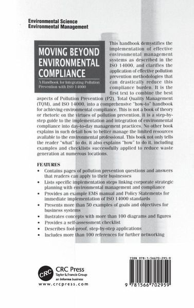 This book describes methods, tools, and techniques for integrating pollution prevention, ISO 14000, and environmental compliance, and thus guides organizations to reduce their impact on the environment and operating costs associated with maintaining environmental compliance.