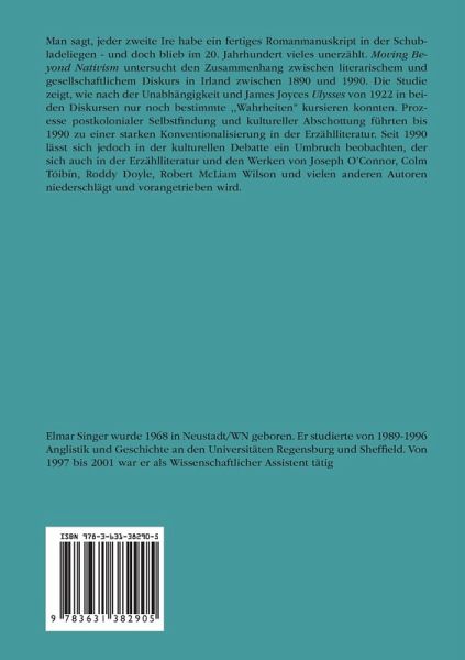 Man sagt, jeder zweite Ire habe ein fertiges Romanmanuskript in der Schublade liegen - und doch blieb im 20. Jahrhundert vieles unerzählt. Moving Beyond Nativism untersucht den Zusammenhang zwischen literarischem und gesellschaftlichem Diskurs in Irland zwischen 1890 und 1990. Die Studie zeigt, wie nach der Unabhängigkeit und James Joyces Ulysses von 1922 in beiden Diskursen nur noch bestimmte "Wahrheiten" kursieren konnten. Prozesse postkolonialer Selbstfindung und kultureller Abschottung führten bis 1990 zu einer starken Konventionalisierung in der Erzählliteratur. Seit 1990 lässt sich jedoch in der kulturellen Debatte ein Umbruch beobachten, der sich auch in der Erzählliteratur und den Werken von Joseph O'Connor, Colm Tóibín, Roddy Doyle, Robert McLiam Wilson und vielen anderen Autoren niederschlägt und vorangetrieben wird.
