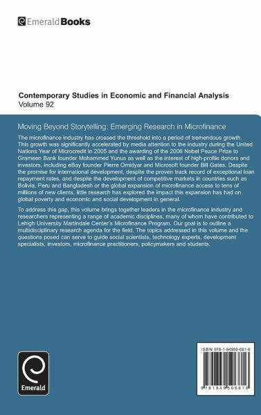 Despite the promise for international development, and despite the proven track record of exceptional loan repayment rates, little research has explored the impact this expansion has had on global poverty and economic and social development in general. This title outlines a multidisciplinary research agenda for the field.