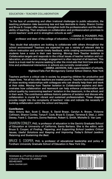 This book explains and demonstrates how collaboration and teamwork can help enhance professionalism and school quality by overcoming teachers' isolation in the classroom, in the school, and in their work.
