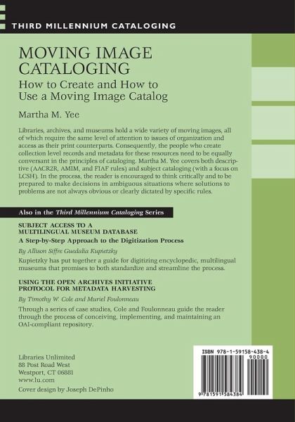 Libraries, archives, and museums hold a wide variety of moving images. all of which require the same level of attention to issues of organization and access as their print counterparts. Consequently, the people who create collection level records and metadata for these resources need to be equally conversant in the principles of cataloging. Martha Yee covers both descriptive (AACR2R, AMIM, and FIAF rules) and subject cataloging (with a focus on LCSH). In the process, the reader is encouraged to think critically and to be prepared to make decisions in ambiguous situations where solutions to problems are not always obvious or clearly dictated by specific rules.
