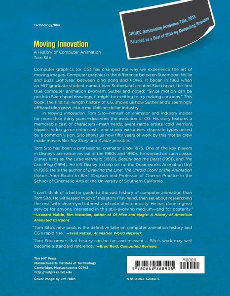 A behind-the-scenes history of computer graphics, featuring a cast of math nerds, avant-garde artists, cold warriors, hippies, video game players, and studio executives. Computer graphics (or CG) has changed the way we experience the art of moving images. Computer graphics is the difference between Steamboat Willie and Buzz Lightyear, between ping pong and PONG. It began in 1963 when an MIT graduate student named Ivan Sutherland created Sketchpad, the first true computer animation program. Sutherland noted: "Since motion can be put into Sketchpad drawings, it might be exciting to try making cartoons.” This book, the first full-length history of CG, shows us how Sutherland's seemingly offhand idea grew into a multibillion dollar industry. In Moving Innovation, Tom Sito—himself an animator and industry insider for more than thirty years—describes the evolution of CG. His story features a memorable cast of characters—math nerds, avant-garde artists, cold warriors, hippies, video game enthusiasts, and studio executives: disparate types united by a common vision. Sito shows us how fifty years of work by this motley crew made movies like Toy Story and Avatar possible.