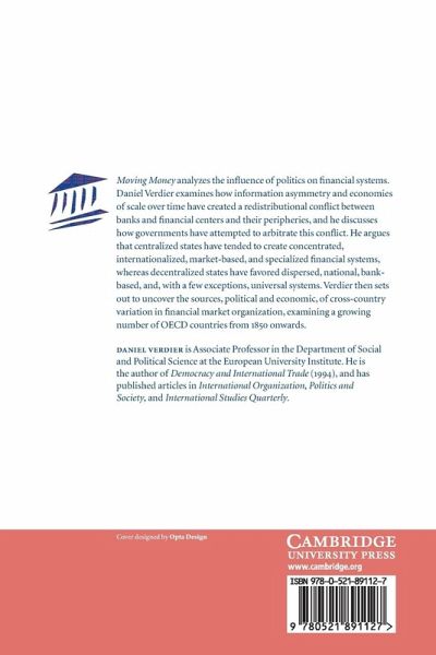 Moving Money analyses the influence of politics on financial systems. Daniel Verdier examines how information asymmetry and economies of scale over time have created a redistributional conflict between large and small banks, financial centres and their peripheries, and he discusses how governments have attempted to arbitrate this conflict. He argues that centralized states have tended to create concentrated, internationalized, market-based and specialized financial systems, whereas decentralized states have favoured dispersed, national, bank-based and, with a few exceptions, universal systems. Verdier then sets out to uncover the sources, political and economic, of cross-country variation in financial market organization, examining 15 to 20 OECD countries from 1850 onwards.