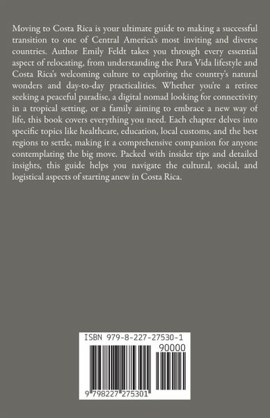 Moving to Costa Rica is your ultimate guide to making a successful transition to one of Central America's most inviting and diverse countries. Author Emily Feldt takes you through every essential aspect of relocating, from understanding the Pura Vida lifestyle and Costa Rica's welcoming culture to exploring the country's natural wonders and day-to-day practicalities. Whether you're a retiree seeking a peaceful paradise, a digital nomad looking for connectivity in a tropical setting, or a family aiming to embrace a new way of life, this book covers everything you need. Each chapter delves into specific topics like healthcare, education, local customs, and the best regions to settle, making it a comprehensive companion for anyone contemplating the big move. Packed with insider tips and detailed insights, this guide helps you navigate the cultural, social, and logistical aspects of starting anew in Costa Rica.