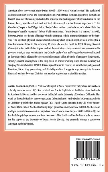 American short-story writer Andre Dubus (1936-1999) was a "writer's writer." His acclaimed collections of short stories and essays involve one or all of three thematic discourses - that of the Catholic Church as center of meaning and value, the symbolic and healing power of rites and ritual on the human heart, and the ethical and spiritual dilemmas that drive human experience. "Like Chekhov's" reports the Village Voice, "Dubus's best stories contain the arc of a whole life in the language of specific moments." Tobias Wolff summarized, "Andre Dubus is a master." In 1986, however, Dubus lost the use of his legs when he attempted to help a stranded motorist on the highway. The spiritual, physical and emotional suffering which ensued kept him from writing for a time but eventually led to his authoring 17 stories before his death in 1999. Moving Toward Redemption is a critical six-chapter study of these stories as they are united as capstones to his previous work, as they participate in the Catholic cycle of sin, suffering and sacramentality, and as they individually address the various transformations of his life in the aftermath of the accident. Moving Toward Redemption is the only book on Dubus's writing since Thomas Kennedy's A Study of the Short Fiction (1988). It is designed for use in courses on short fiction, religion and literature, life writing, genre study, and disability studies. It suggests ways to negotiate the conflicts and tensions between Christian and secular approaches to disability studies.