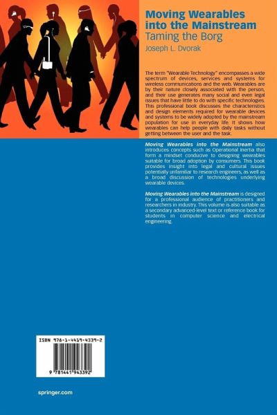 The term Wearable Technology encompasses a wide spectrum of devices, services and systems for wireless communications and the web. This book discusses characteristics and design elements required for wearable devices and systems to be embraced by the mainstream population for use in their everyday lives, introducing concepts such as Operational Inertia. The book discusses social and legal issues that may pose the greatest impediment to adoption of wearables. The book is structured to meet the needs of researchers and practitioners in industry, and can also be used as a secondary text in advanced-level courses in computer science and electrical engineering.