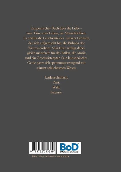Ein poetisches Buch über die Liebe - zum Tanz, zum Leben, zur Menschlichkeit. Es erzählt die Geschichte des Tänzers Léonard, der sich aufgemacht hat, die Bühnen der Welt zu erobern. Sein Herz schlägt dabei gleich mehrfach: für das Ballett, die Musik und ein Geschwisterpaar. Sein künstlerisches Genie paart sich spannungserzeugend mit seinem schüchternen Wesen. Dies wird durch die Notwendigkeit gefordert, für den Erfolg bis an alle Grenzen zu gehen. Leidenschaftlich. Zart. Wild. Intensiv.