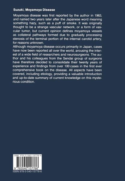 1 History and Definition.- 2 Epidemiology and Symptomatology.- 2.1 Introduction.- 2.2 Incidence.- 2.3 Incidence by Sex.- 2.4 Age at Onset.- 2.5 Age on Admission.- 2.6 Initial Symptoms and Symptoms over the Clinical Course.- 2.7 Laboratory Findings on Admission.- 2.8 Family History.- 2.9 Anamnesis.- 2.10 Conclusion.- 3 Cerebral Angiography.- 3.1 Introduction.- 3.2 Basal Moyamoya.- 3.3 Nature of Basal Moyamoya.- 3.4 Ethmoidal Moyamoya.- 3.5 Vault Moyamoya.- 3.6 Cerebral Angiograms Taken After Hyperventilation.- 3.7 Summary.- 4 Mechanisms of Symptomatic Occurrence.- 4.1 Introduction.- 4.2 Mechanism of TIA in Children.- 4.3 Mechanism of Onset of Symptoms Due to Intracranial Hemorrhage in Adults.- 4.4 Summary.- 5 Electroencephalography.- 5.1 Introduction.- 5.2 Electrical Activity of the Brain in Juvenile Moyamoya Disease.- 5.3 Electroencephalography in Adult Cases of Moyamoya Disease.- 5.4 Evoked Potentials.- 5.5 Summary.- 6 Computerized Tomography.- 6.1 Introduction.- 6.2 Unenhanced Scan.- 6.3 Enhanced Scan.- 6.4 Stage of Moyamoya Disease and Computerized Tomography.- 6.5 Conclusion.- 7 Positron Emission Computerized Tomography.- 7.1 Introduction.- 7.2 Cases.- 8 Cerebral Hemodynamics.- 8.1 Introduction.- 8.2 Average Cerebral Blood Flow and Hemispherical Blood Flow.- 8.3 Vascular Response in Moyamoya Disease.- 8.4 Conclusion.- 9 Treatment.- 9.1 Introduction.- 9.2 Therapy of Infarction Attacks.- 9.3 Superficial Temporal Artery-Cortical Branch of the Middle Cerebral Artery Anastomosis (STA-MCA Anastomosis) and Encephalomyo-synangiosis.- 9.4 Transplantation of the Omentum.- 9.5 Encephaloduroarteriosynangiosis.- 9.6 Therapy for and Prevention of Intracranial Hemorrhage.- 9.7 Anesthesia During Surgery for Moyamoya Disease.- 9.8 Conclusion.- 10 Pathology.- 10.1 Introduction.- 10.2Autopsy Materials.- 10.3 Pathology of Autopsied Brain Tissue.- 10.4 Investigations Based upon Whole Body Autopsy.- 10.5 Conclusion.- 11 Etiology.- 11.1 Introduction.- 11.2 Background to Our Experimental Research.- 11.3 Experimental Methods and Results.- 11.4 Conclusion.- 12 Quasi-Moyamoya Diseases.- 12.1 Introduction.- 12.2 Unilateral Quasi-Moyamoya Disease.- 12.3 Quasi-Moyamoya Disease in Which Bilateral or Unilateral Stenosis or Occlusion of the Proximal Portion of the MCA Is Seen, Together with Moyamoya Vessels in the Immediate Vicinity.- 12.4 Quasi-Moyamoya Disease with Vascular Malformations.- 12.5 Quasi-Moyamoya Disease Due to Known Causes.- 12.6 Quasi-Moyamoya Disease Due to Other Causes.- 12.7 Conclusion.- References.