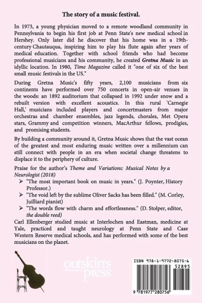 Fifty years ago, something special happened in the remote woods of Pennsylvania, and its song still carries on the wind today. In 1976, Carl Ellenberger, a musician before becoming a physician, gathered friends in a nineteenth-century Chautauqua Auditorium in Pennsylvania's Amish country. They thought it was a beautiful location to play the music they loved, and that it would also be fun. That gentle beginning turned into the organization called Gretna Music and nearly five decades of summer music-making, drawing audiences from across the Mid-Atlantic region to hear over 750 exceptional performances by more than 2,000 musicians from five continents. Gretna Music has welcomed the Audubon String Quartet, Dave Brubeck, Ravi Coltrane, Canadian Brass, Susanna Phillips, Orpheus Chamber Orchestra, Sonny Rollins, and Hilary Hahn, to name just a few. Within "Mozart in the Woods: Gretna Music's 50 Years" are their stories and the stories of Mt. Gretna and its residents: from financial collapse to the literal physical collapse of the hall, from cultural evolution to existential arguments over artistic integrity. Gretna Music has weathered storms, celebrated joyfully, and thrived. Ellenberger's historical account captures this long moment in time, which has simultaneously passed in the blink of an eye, while also offering a blueprint for similar endeavors. "Mozart in the Woods" is perfect for audiences and performers alike, as well as for students of performance and performance management.