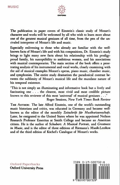 The publication in paper covers of Einstein's classic study of Mozart's character and works will be welcomed by all who wish to learn more about one of the greatest musical geniuses of all time.