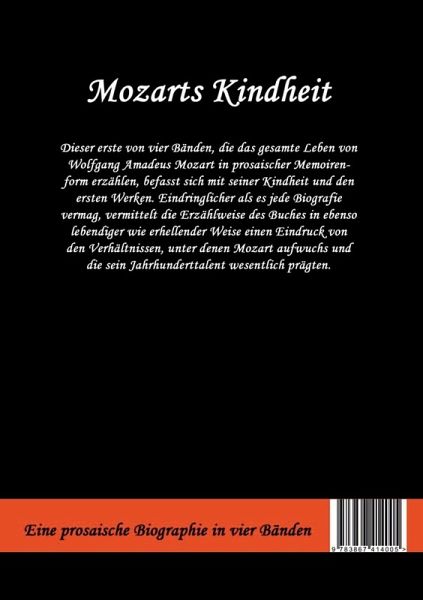 Dieser erste von vier Bänden, die das gesamte Leben von Wolfgang Amadeus Mozart in prosaischer Memoirenform erzählen, befasst sich mit seiner Kindheit und den ersten Werken. Eindringlicher als es jede Biografie vermag, vermittelt die Erzählweise des Buches in ebenso lebendiger wie eindringlicher Weise einen Eindruck von den Verhältnissen, unter denen Mozart aufwuchs und die sein Jahrhunderttalent wesentlich prägten.