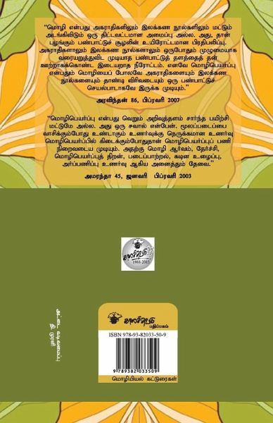 Language cannot be defined by the lexicans/dictionaries and grammar books. It is a strong reflection of the culture, society and the environment. Thus, translation is also an extension of such cultural representation. This book is a collection of articles on translation published in Kalachuvadu magazine.