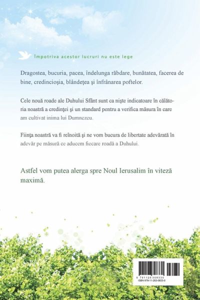 Prin roada Duhului Sfânt, putem să ne cercetăm pe noi înșine ca să vedem cât de mult ne-am sfinţit, cât de aproape de tronul lui Dumnezeu ne putem apropia și cât de mult am cultivat o inimă ca a Domnului, care este mirele nostru. Cu cât aducem mai multă roadă a Duhului, cu atât mai strălucitor și mai frumos va fi locașul ceresc în care vom intra. Pentru a intra în Noul Ierusalim din Cer, trebuie să producem roadele Duhului pe deplin și nu doar în parte.