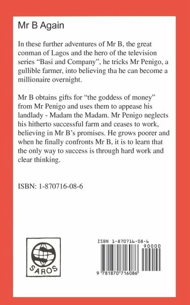 In the sequel to Mr B, the great conman of Lagos and the hero of Basi and Company tricks Mr Penigo, a gullible farmer, into believing he can become a millionaire overnight. When he finally confronts Mr B, it is to learn that the only way to success is through hard work and clear thinking.