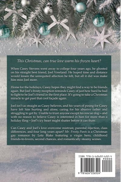 Frosty former friends get a second chance in this Christmas gay romance! Can true love warm his frozen heart? When Casey Stevens went away to college four years ago, he ghosted on his best friend, Joel Vreeland. He hoped time and distance would lessen the unrequited affection he felt, but all it did was make him miss Joel more. Home for the holidays, Casey hopes they might find a way to be friends again. But Joel's frosty reception reminds Casey of just how hard he had to fight to be Joel's friend in the first place. It's going to take a Christmas miracle to get past that cool façade again. Joel's years of pining for Casey have left him hurting and alone, caring for his abusive father and struggling to get by. Unable to trust anyone except his rescue dog his icy heart might shatter before it can thaw. Can Casey and Joel's love overcome mistrust, parental rejection, class differences, and four long years apart?