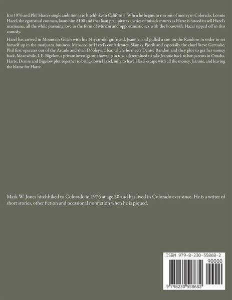 It is 1976 and Phil Harte's single ambition is to hitchhike to California. When he begins to run out of money in Colorado, Lonnie Hazel, the egotistical conman, loans him $100 and that loan precipitates a series of misadventures as Harte is forced to sell Hazel's marijuana, all the while pursuing love in the form of Miriam and opportunistic sex with the housewife Hazel ripped off in my debut novel, Mr. Green Goes to Town, which is 140,550 words for this comedy. Hazel has arrived in Mountain Gulch with his 14-year-old girlfriend, Jeannie, and pulled a con on the Randons in order to set himself up in the marijuana business. Menaced by Hazel's confederates, Skunky Pjorik and especially the churl Steve Gervaske, Phil first operates out of the Arcade and then Dooley's, a bar, where he meets Denise Randon and they plot to get her money back. Meanwhile, I. E. Bigelow, a private investigator, shows up in town determined to take Jeannie back to her parents in Omaha. Harte, Denise and Bigelow plot together to bring down Hazel, only to have Hazel escape with all the money, Jeannie, and leaving the blame for Harte