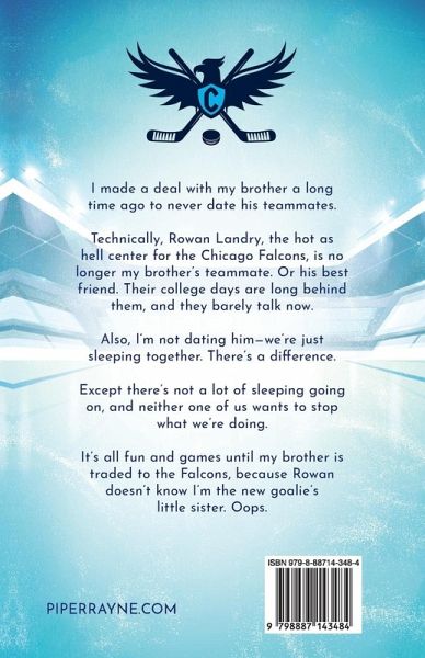 I made a deal with my brother a long time ago to never date his teammates. Technically, Rowan Landry, the hot as hell center for the Chicago Falcons, is no longer my brother's teammate. Or his best friend. Their college days are long behind them, and they barely talk now. Also, I'm not dating him-we're just sleeping together. There's a difference. Except there's not a lot of sleeping going on, and neither one of us wants to stop what we're doing. It's all fun and games until my brother is traded to the Falcons, because Rowan doesn't know I'm the new goalie's little sister. Oops.