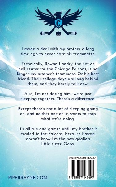 I made a deal with my brother a long time ago to never date his teammates. Technically, Rowan Landry, the hot as hell center for the Chicago Falcons, is no longer my brother's teammate. Or his best friend. Their college days are long behind them, and they barely talk now. Also, I'm not dating him-we're just sleeping together. There's a difference. Except there's not a lot of sleeping going on, and neither one of us wants to stop what we're doing. It's all fun and games until my brother is traded to the Falcons, because Rowan doesn't know I'm the new goalie's little sister. Oops.