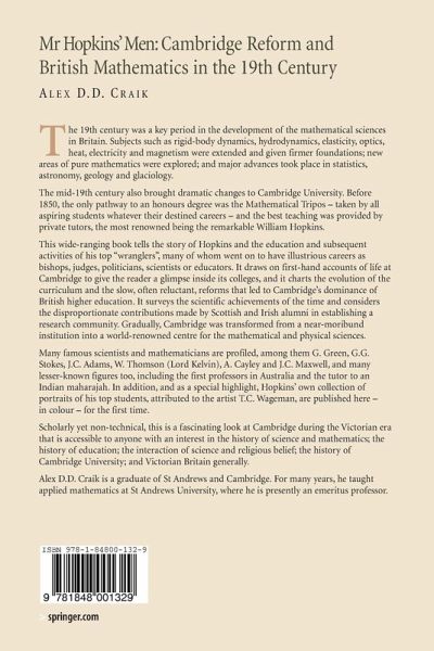 "Mr Hopkins' Men is a book which takes the reader on a hike across nineteenth century mathematics in the British Isles. It takes in university reform, the lives of great mathematicians and the cultural influences and religious controversies in Victorian Britain. The author provides an engaging combination of historical colour, breadth of scope and fascinating detail in his narrative. It was a joy to read [Mark McCartney, University of Ulster: BSHM Bulletin]"