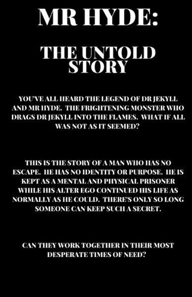 You've all heard the legend of Dr Jekyll and Mr Hyde. The frightening monster who drags Dr Jekyll into the flames. What if all was not as it seemed? This is the story of a man who has no escape. He has no identity or purpose. He is kept as a mental and physical prisoner while his alter ego continued his life as normally as he could. There's only so long someone can keep such a secret. Can they work together in their most desperate times of need?
