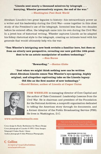 Abraham Lincoln's two great legacies to history--his extraordinary power as a writer and his leadership during the Civil War--come together in this close study of the President's use of the telegraph. Invented less than two decades before he entered office, the telegraph came into its own during the Civil War. In a jewel-box of historical writing, Wheeler captures Lincoln as he adapted his folksy rhetorical style to the telegraph, creating an intimate bond with his generals that would ultimately help win the war.