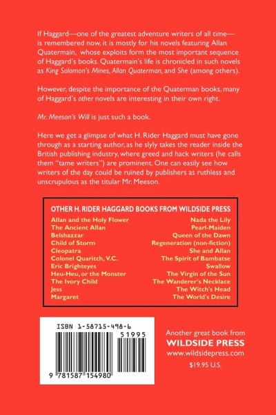 Mr. Meeson's Will by H. Rider Haggard is an intriguing legal drama combined with adventure and romance. The story centers around Augusta Smithers, a young author, and the eccentric publisher Mr. Meeson. When Mr. Meeson decides to change his will, he tattoos the new instructions on Augusta's back. Following a shipwreck, Augusta finds herself marooned on a desert island with other survivors, including a potential love interest, Eustace. As they struggle for survival, the tattooed will becomes the focal point of a dramatic legal battle upon their rescue. Published in 1888, Mr. Meeson's Will blends Haggard's adventurous spirit with a unique and captivating plot.