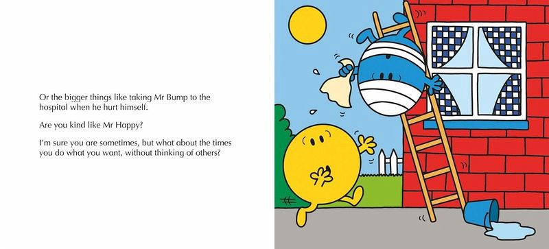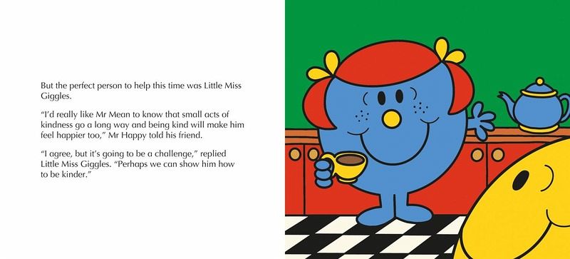 Lots of the Mr Men and Little Miss are kind. Mr Happy loves making his friends happy by doing kind deeds. But it can be easier to do what you want without thinking of others. Have you ever found it difficult to be kind? Mr Mean probably finds it the hardest to be kind. Can Mr Happy and Little Miss Giggles help him to learn that small acts of kindness bring much happiness?
