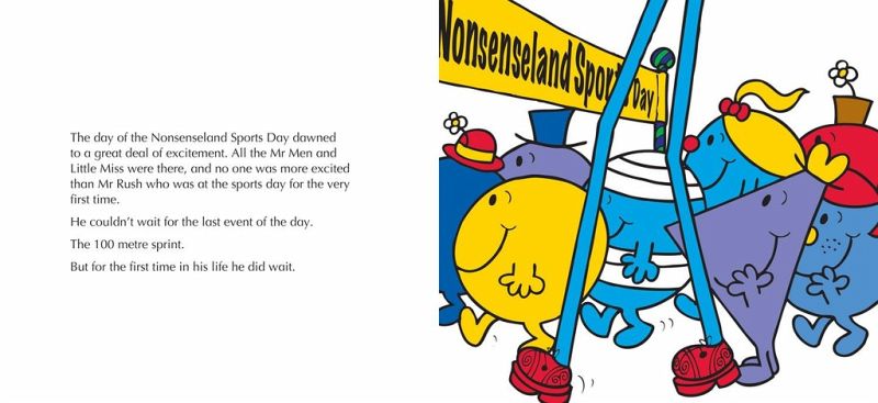 Thereâ s going to be a sports day in Nonsenseland and all the Mr Men and Little Miss are invited, but will it be what they are expecting? A silly, fun-filled sportâ s day story featuring lots of your favourite Mr Men and Little Miss characters showing their sporting prowess â or not!