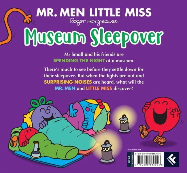 Mr Small and his friends are spending the night at a museum. Thereâ s much to see before they settle down for their sleepover! But when the lights are out and surprising noises are heard, what will the Mr Men and Little Miss discover?