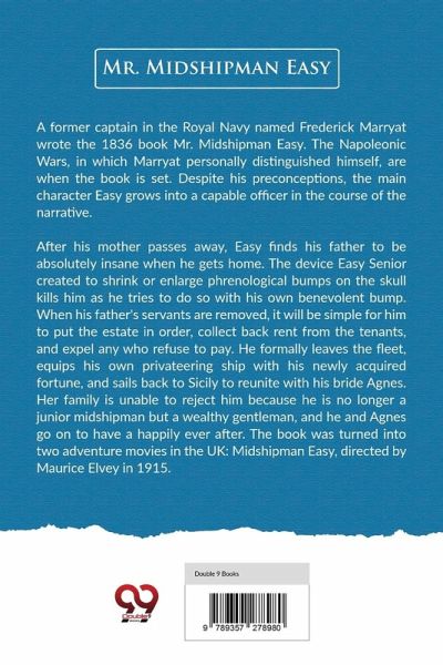 A former captain in the Royal Navy named Frederick Marryat wrote the 1836 book Mr. Midshipman Easy. The Napoleonic Wars, in which Marryat personally distinguished himself, are when the book is set. Despite his preconceptions, the main character Easy grows into a capable officer in the course of the narrative. After his mother passes away, Easy finds his father to be absolutely insane when he gets home. The device Easy Senior created to shrink or enlarge phrenological bumps on the skull kills him as he tries to do so with his own benevolent bump. When his father's servants are removed, it will be simple for him to put the estate in order, collect back rent from the tenants, and expel any who refuse to pay. He formally leaves the fleet, equips his own privateering ship with his newly acquired fortune, and sails back to Sicily to reunite with his bride Agnes. Her family is unable to reject him because he is no longer a junior midshipman but a wealthy gentleman, and he and Agnes go on to have a happily ever after. The book was turned into two adventure movies in the UK: Midshipman Easy, directed by Maurice Elvey in 1915.