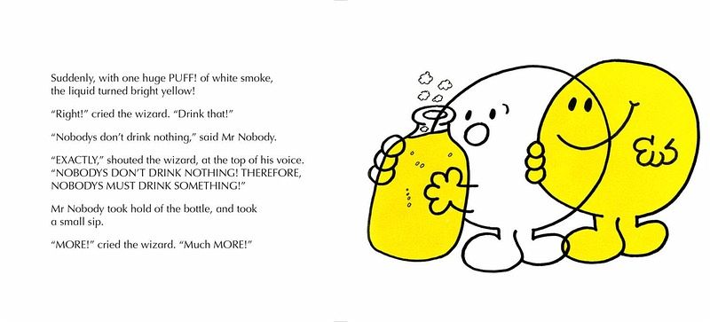 One day when Mr Happy goes to meet Little Miss Sunshine he stumbles across Mr Nobody crying big fat wet tears. Can Mr Happy make Mr Nobody see that everybody is somebody?