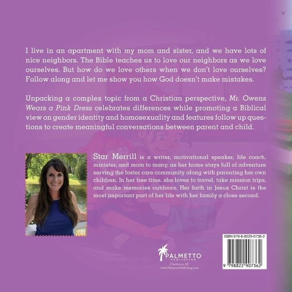 I live in an apartment with my mom and sister, and we have lots of nice neighbors. The Bible teaches us to love our neighbors as we love ourselves. But how do we love others when we don't love ourselves? Follow along and let me show you how God doesn't make any mistakes. Unpacking a complex topic from a Christian perspective, Mr. Owens Wears a Pink Dress celebrates differences while promoting a Biblical view on gender identity and homosexuality.