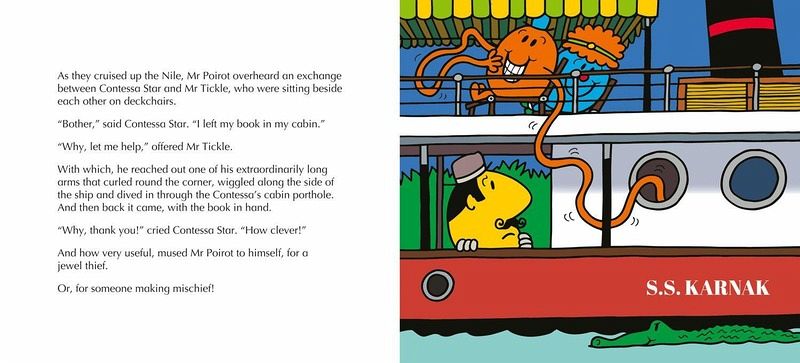 Agatha Christie's most famous detectives receive the Mr Men Little Miss treatment! Hercule Poirot meets Mr Men and Little Miss in this new story, written and illustrated by Adam Hargreaves. Loosely inspired by Death on the Nile, but with a charming and humorous twist for younger fans, this is a mystery that requires 'little grey cells' to solve it! Introducing Mr Poirot - a new Mr Men character who is a famous Belgian detective, like someone Agatha Christie fans have already met! Mr Poirot is escaping the winter gloom with a sunny cruise on the River Nile when he meets his friend Colonel Rush, who travels the world tracking down criminals. His relaxing holiday soon includes much mischief and a mystery to solve, with many Mr Men and Little Miss suspects, including Mr Tickle with his extraordinarily long arms! Can Mr Poirot use his little grey cells to solve this most mischievous mystery? This is the first Mr Poirot mystery in a mischievous new partnership, publishing alongside Little Miss Marple: Muddle at the Vicarage.
