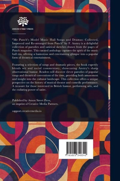 "Mr Punch's Model Music Hall Songs and Dramas: Collected, Improved and Re-arranged from Punch" by F. Anstey is a delightful collection of parodies and satirical sketches drawn from the pages of Punch magazine. This curated anthology captures the spirit of the music hall era, offering a humorous and entertaining glimpse into a popular form of theatrical entertainment. Featuring a selection of songs and dramatic pieces, the book expertly blends wit and social commentary, showcasing Anstey's sharp observational humor. Readers will discover clever parodies of popular songs and theatrical conventions of the time, providing both amusement and insight into the cultural landscape. This collection offers a unique perspective on the history of musical theater and comedic performance. A treasure for those interested in British humor, performing arts, and the enduring power of satire. This work has been selected by scholars as being culturally important, and is part of the knowledge base of civilization as we know it. This work is in the public domain in the United States of America, and possibly other nations. Within the United States, you may freely copy and distribute this work, as no entity (individual or corporate) has a copyright on the body of the work. Scholars believe, and we concur, that this work is important enough to be preserved, reproduced, and made generally available to the public. We appreciate your support of the preservation process, and thank you for being an important part of keeping this knowledge alive and relevant.