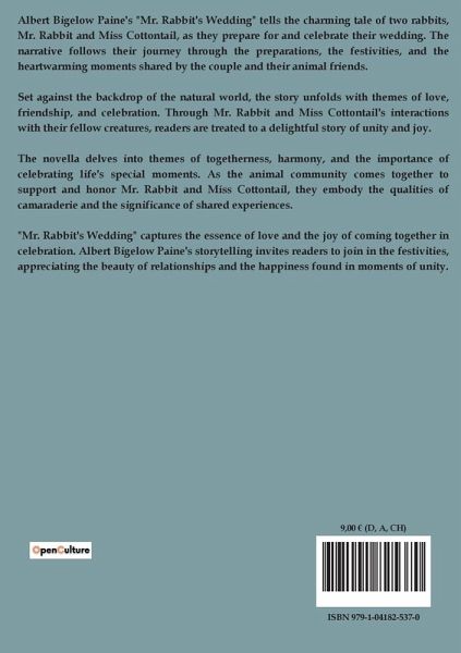 "Mr. Rabbit's Wedding" by Albert Bigelow Paine is a charming collection of stories set in the whimsical world of the Big Deep Woods. The narrative follows the adventures of Mr. Jack Rabbit and his friends, including Mr. 'Possum, Mr. 'Coon, and the Old Black Crow, as they prepare for the wedding of Mr. Rabbit and Miss Myrtle Meadows. The story begins with the introduction of Miss Myrtle, a rabbit who has escaped from a life in captivity with Mr. Man's family. Her arrival in the Big Deep Woods is marked by a thrilling escape from Mr. Man's dog, leading her to find refuge with Mr. Robin and eventually meeting Mr. Jack Rabbit. The Hollow Tree residents, excited by the prospect of a wedding, plan an elaborate celebration with ceremonies and a feast. Each character contributes to the preparations, showcasing their remarkable talents and deepening the bonds of friendship. The narrative is rich with humor and warmth, capturing the essence of community and the joy of shared experiences. Paine's storytelling is enhanced by the delightful illustrations of J. M. Condé, which bring the characters and their adventures to life. The book is a testament to the enduring appeal of tales that celebrate friendship, adventure, and the simple pleasures of life in a magical woodland setting.