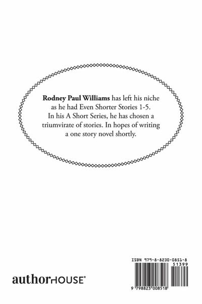 Rodney Paul Williams has left his niche as he had Even Shorter Stories 1-5. In his A Short Series, he has chosen a triumvirate of stories. In hopes of writing a one story novel shortly.