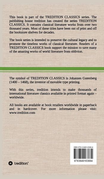 This book (hardcover) is part of the TREDITION CLASSICS. It contains classical literature works from over two thousand years. Most of these titles have been out of print and off the bookstore shelves for decades. The book series is intended to preserve the cultural legacy and to promote the timeless works of classical literature. Readers of a TREDITION CLASSICS book support the mission to save many of the amazing works of world literature from oblivion. With this series, tredition intends to make thousands of international literature classics available in printed format again worldwide.