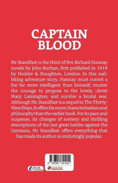 Mr Standfast is the third of five Richard Hannay novels by John Buchan, first published in 1919 by Hodder & Stoughton, London. In this nail-biting adventure story, Hannay must outwit a foe far more intelligent than himself; muster the courage to propose to the lovely, clever Mary Lamington; and survive a brutal war. Although Mr. Standfast is a sequel to The Thirty-Nine Steps, it offers far more characterisation and philosophy than the earlier book. For its pace and suspense, its changes of scenery and thrilling descriptions of the last great battles against the Germans, Mr Standfast offers everything that has made its author so enduringly popular.