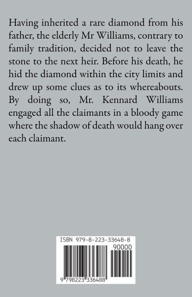 Having inherited a rare diamond from his father, the elderly Mr Williams, contrary to family tradition, decided not to leave the stone to the next heir. Before his death, he hid the diamond within the city limits and drew up some clues as to its whereabouts. By doing so, Mr. Kennard Williams engaged all the claimants in a bloody game where the shadow of death would hang over each claimant.