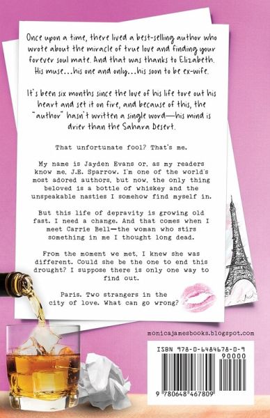 Once upon a time, there lived a best-selling author who wrote about the miracle of true love and finding your forever soul mate. And that was thanks to Elizabeth. His muse…his one and only…his soon to be ex-wife. It’s been six months since the love of his life tore out his heart and set it on fire, and because of this, the "author" hasn’t written a single word—his mind is drier than the Sahara Desert. That unfortunate fool? That’s me. My name is Jayden Evans or, as my readers know me, J.E. Sparrow. I’m one of the world’s most adored authors, but now, the only thing beloved is a bottle of whiskey and the unspeakable nasties I somehow find myself in. But this life of depravity is growing old fast. I need a change. And that comes when I meet Carrie Bell—the woman who stirs something in me I thought long dead. From the moment we met, I knew she was different. Could she be the one to end this drought? I suppose there is only one way to find out. Paris. Two strangers in the city of love. What can go wrong?