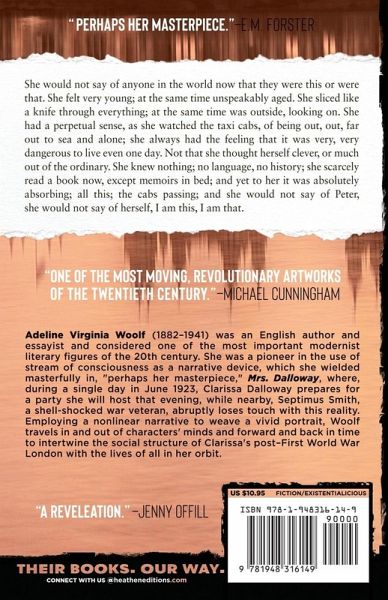 Adeline Virginia Woolf (1882-1941) was an English author and essayist and considered one of the most important modernist literary figures of the 20th century. She was a pioneer in the use of stream of consciousness as a narrative device, which she wielded masterfully in "perhaps her masterpiece" Mrs. Dalloway, where, during a single day in June 1923, Clarissa Dalloway prepares for a party she will host that evening, while nearby, Septimus Smith, a shell-shocked war veteran, abruptly loses touch with this reality. Employing a nonlinear narrative to weave a vivid portrait, Woolf travels in and out of characters' minds and forward and back in time to intertwine the social structure of Clarissa's post-First World War London with the lives of all in her orbit.