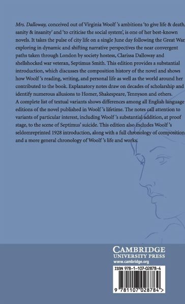 Mrs Dalloway, created from a series of short stories, is one of Virginia Woolf's best-known novels. Thematically it conveys a rich and genuine humanity, in part through Woolf's use of interior perspectives. This edition provides a substantial introduction, which discusses the composition history of the novel and shows how Woolf's reading, writing, and personal life as well as the world around her contributed to the book. Explanatory notes review decades of scholarship while identifying numerous allusions to Homer, Shakespeare, Tennyson and others. A complete list of textual variants shows differences among all English language editions of the novel published in Woolf's lifetime. The notes call attention to variants of particular interest, including Woolf's substantial addition, at proof stage, to the scene of Septimus' suicide. This edition also includes Woolf's seldom-reprinted 1928 introduction, along with a full chronology of composition, and a more general chronology of Woolf's life and works.
