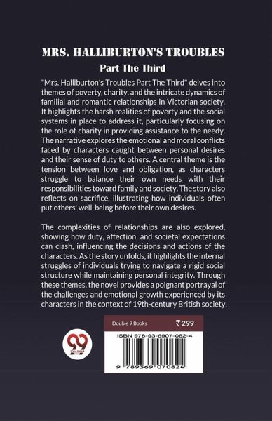 "Mrs. Halliburton's Troubles Part The Third" delves into themes of poverty, charity, and the intricate dynamics of familial and romantic relationships in Victorian society. It highlights the harsh realities of poverty and the social systems in place to address it, particularly focusing on the role of charity in providing assistance to the needy. The narrative explores the emotional and moral conflicts faced by characters caught between personal desires and their sense of duty to others. A central theme is the tension between love and obligation, as characters struggle to balance their own needs with their responsibilities toward family and society. The story also reflects on sacrifice, illustrating how individuals often put others' well-being before their own desires. The complexities of relationships are also explored, showing how duty, affection, and societal expectations can clash, influencing the decisions and actions of the characters. As the story unfolds, it highlights the internal struggles of individuals trying to navigate a rigid social structure while maintaining personal integrity. Through these themes, the novel provides a poignant portrayal of the challenges and emotional growth experienced by its characters in the context of 19th-century British society.