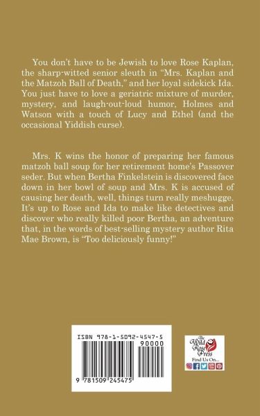 You don't have to be Jewish to love Rose Kaplan, the sharp-witted senior sleuth in "Mrs. Kaplan and the Matzoh Ball of Death," and her loyal sidekick Ida. You just have to love a geriatric mixture of murder, mystery, and laugh-out-loud humor, Holmes and Watson with a touch of Lucy and Ethel (and the occasional Yiddish curse). Mrs. K wins the honor of preparing her famous matzoh ball soup for her retirement home's Passover seder. But when Bertha Finkelstein is discovered face down in her bowl of soup and Mrs. K is accused of causing her death, well, things turn really meshugge. It's up to Rose and Ida to make like detectives and discover who really killed poor Bertha, an adventure that, in the words of best-selling mystery author Rita Mae Brown, is "Too deliciously funny!"