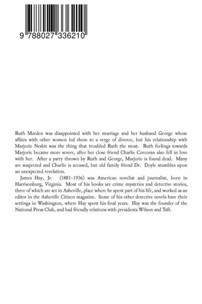 Ruth Marden was disappointed with her marriage and her husband George whose affairs with other women led them to a verge of divorce, but his relationship with Marjorie Nesbit was the thing that troubled Ruth the most. Ruth feelings towards Marjorie became more severe, after her close friend Charlie Corcoran also fell in love with her. After a party thrown by Ruth and George, Marjorie is found dead. Many are suspected and Charlie is accused, but old family friend Dr. Doyle stumbles upon an unexpected revelation. James Hay, Jr. (1881-1936) was American novelist and journalist, born in Harrisonburg, Virginia. Most of his books are crime mysteries and detective stories, three of which are set in Asheville, place where he spent part of his life, and worked as an editor in the Asheville Citizen magazine. Some of his other detective novels have their settings in Washington, where Hay spent his final years. Hay was the founder of the National Press Club, and had friendly relations with presidents Wilson and Taft.